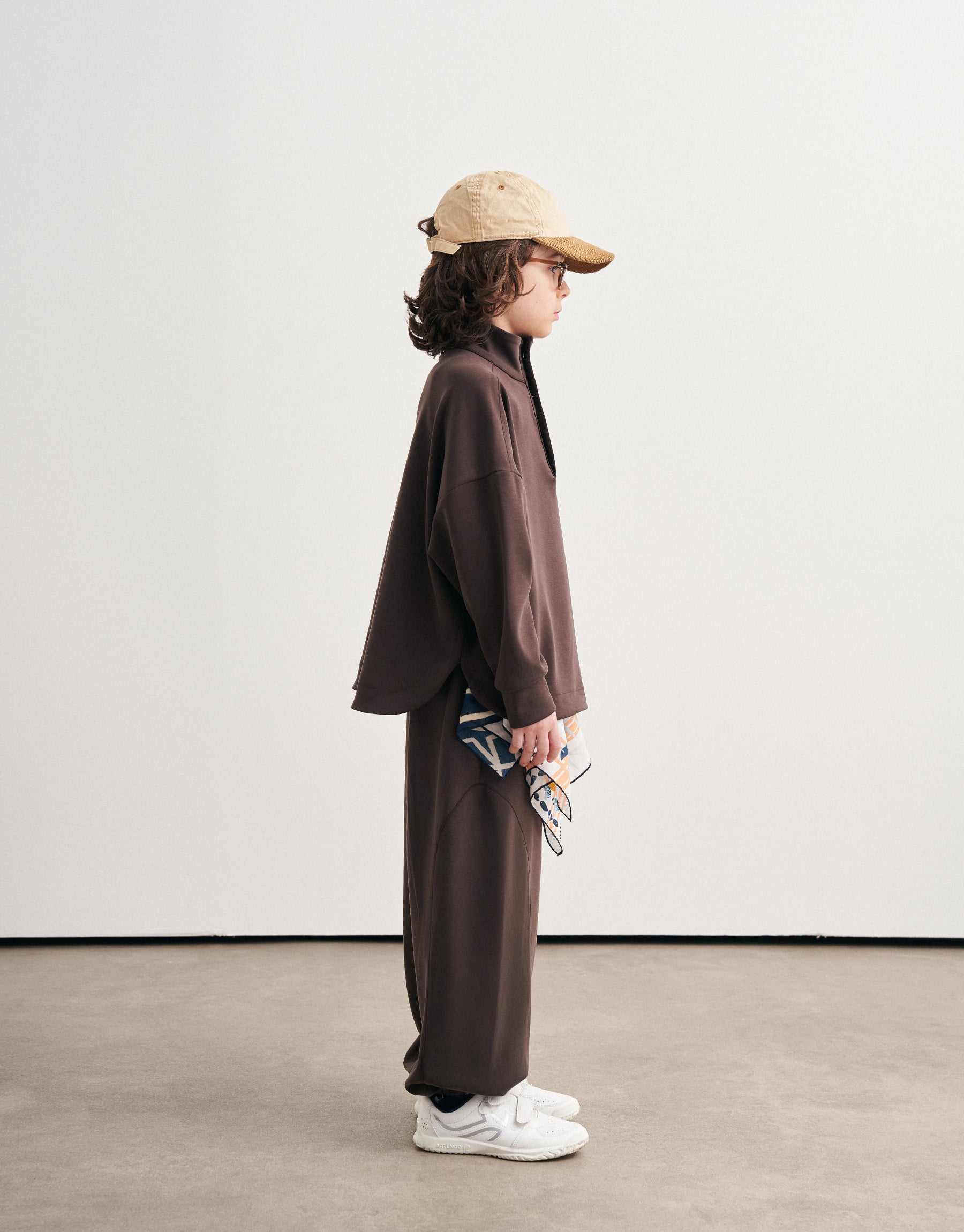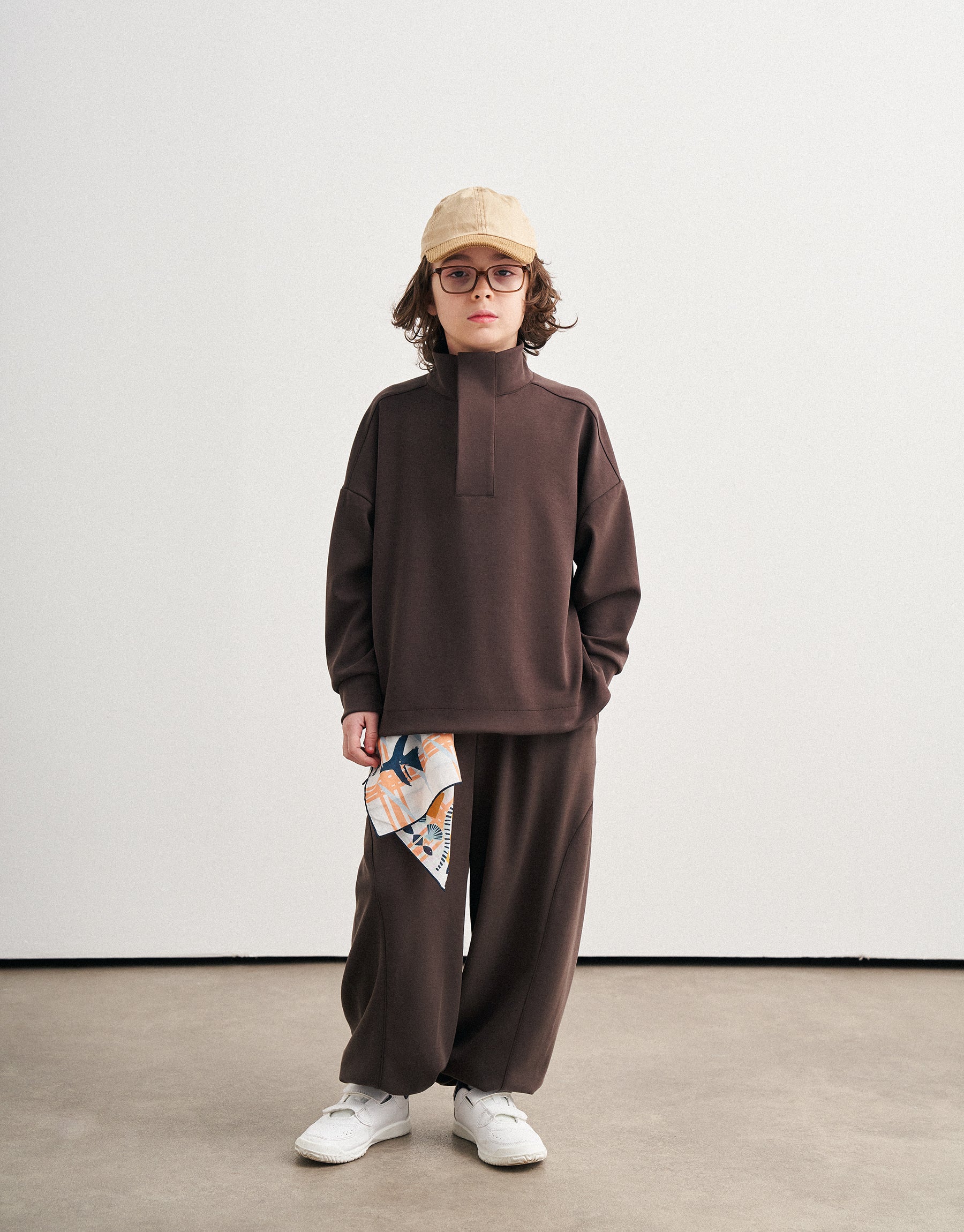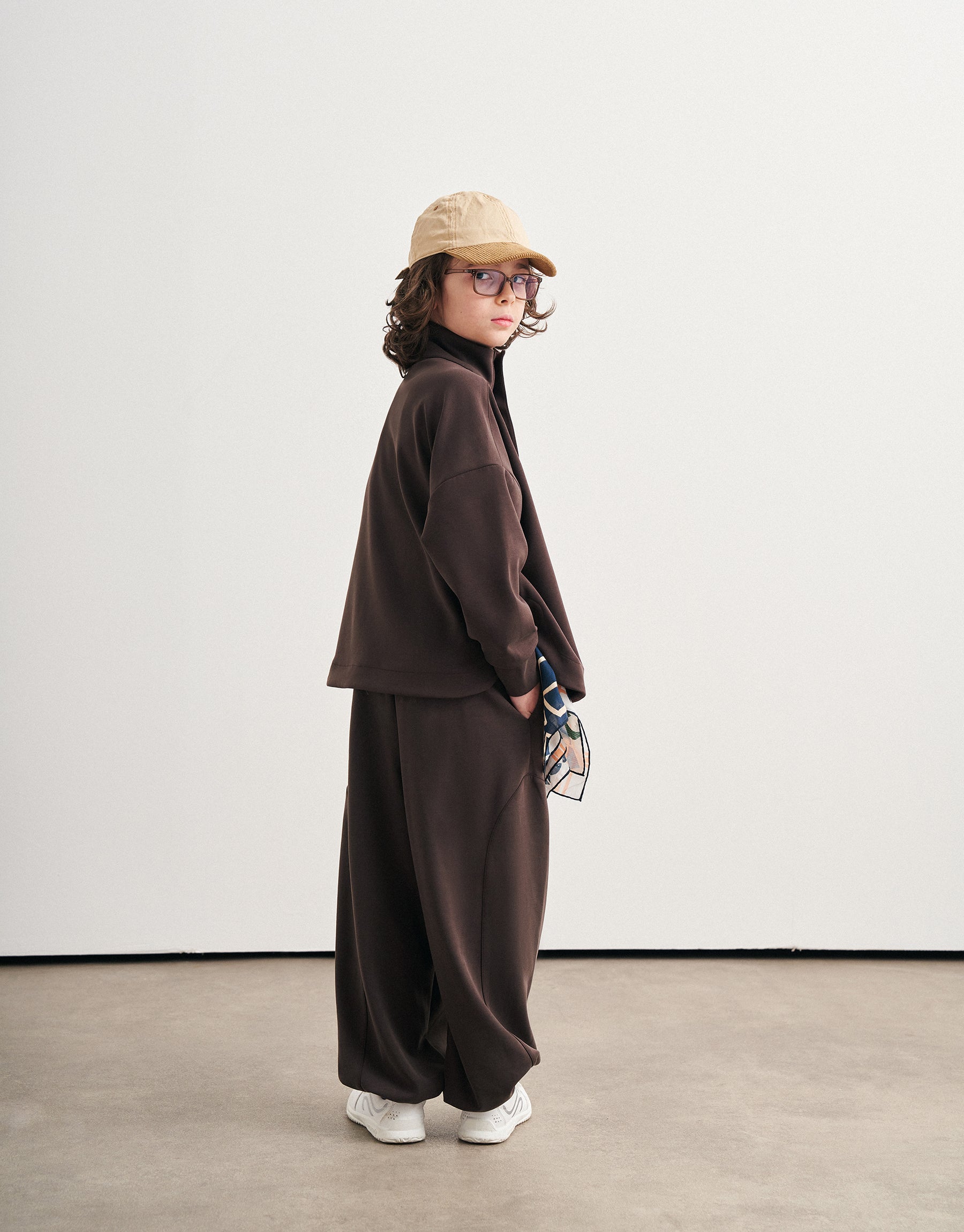 Modal kumaşın doğal yumuşaklığı ve ipeksi dokusu, konforlu bir his sağlamaktadır. Çıtçıtlı ve ön detaylı sweatshirt ve lastikli şalvar pantolon.